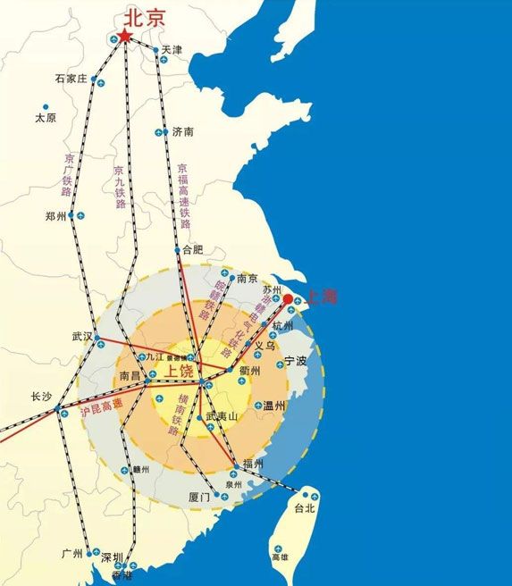 上饒是全國地級市中唯一的高鐵“十字”交匯的城市,乘高鐵坐高鐵直達(dá),北京僅需6小時,廣州、貴陽、柳州僅需5小時,上海、廈門、南京僅需2小時,杭州福州、合肥、南昌均為1小時左右,快速通達(dá)全國。