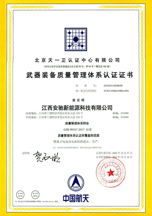 多年以來,公司始終堅持“質量第一,關注客戶,持續(xù)改進,追求卓越”的質量方針,不斷完善流程提升產品的質量,于2020年順利獲得的了GJB9001C武器裝備質量管理體系認證。